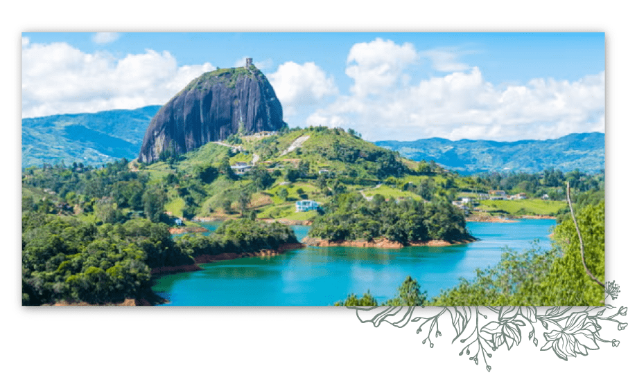 Tal vez uno de los lugares más visitados en todo Colombia. Guatapé es naturaleza, cultura y color. Es una experiencia única que te lleva a admirar el arte en cada zócalo plasmado en el pueblo, observar los habitantes de la zona, probar un café colombiano y apoyar la economía local. El lugar perfecto para conectarse con la naturaleza, cultura y diversión.